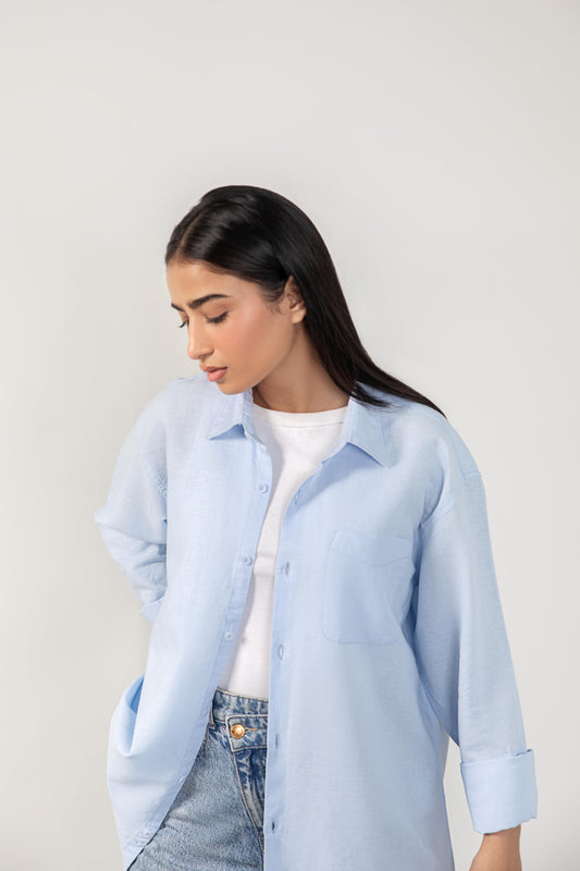 AvailableSea Blue Relaxed Fit Linen Shirt