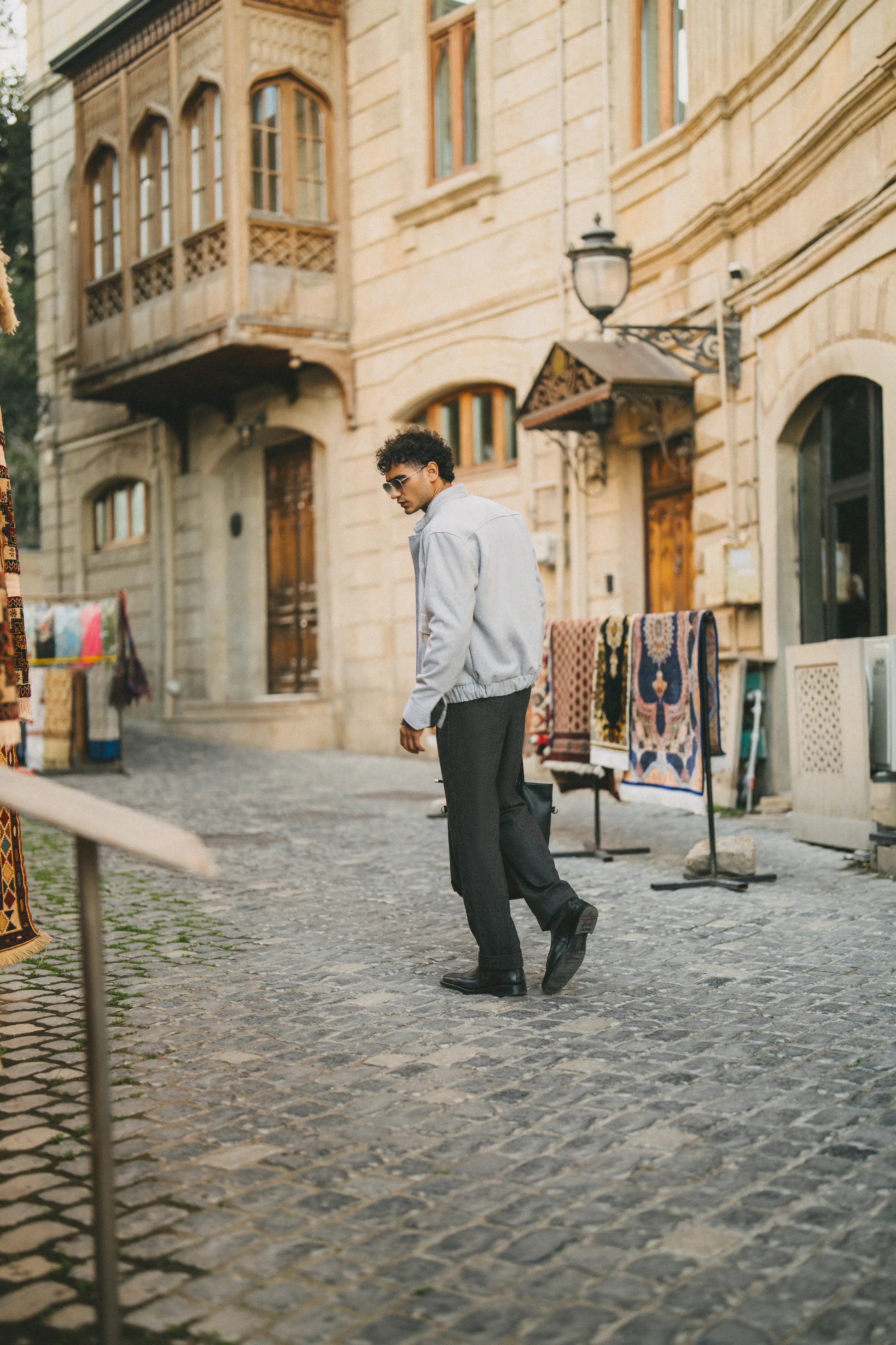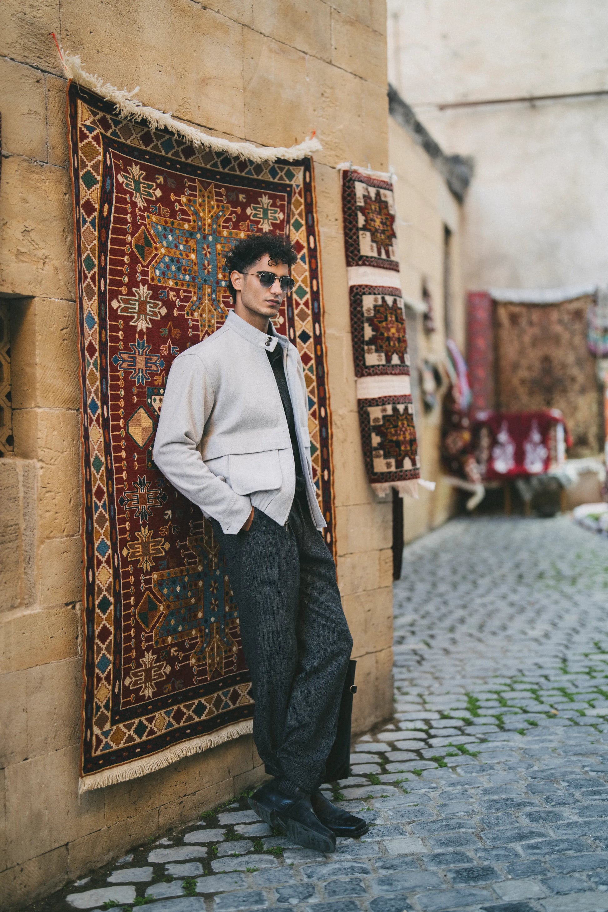 A premium grey wool jacket with structured pockets and a clean modern silhouette, blending classic tailoring with everyday functionality.The clean stand collar and dual utility pockets add practicality while maintaining a refined, city-ready aesthetic.